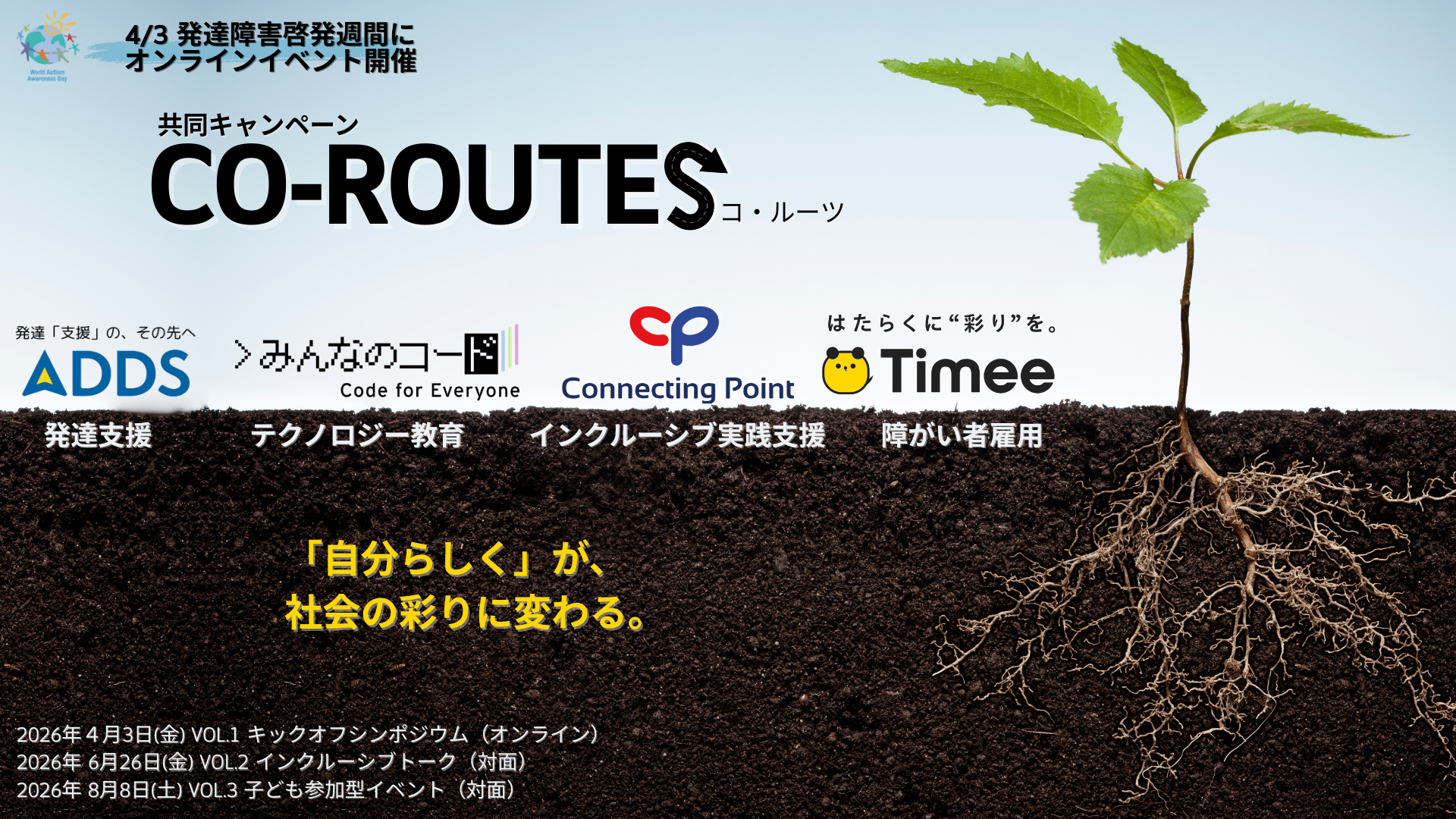ご家族に、科学的根拠に基づいた知⾒を。社会に、どんな⼈も支えられる仕組みを。そして今をともに⽣きるみんなに、⾃分らしい可能性を拓く機会を。