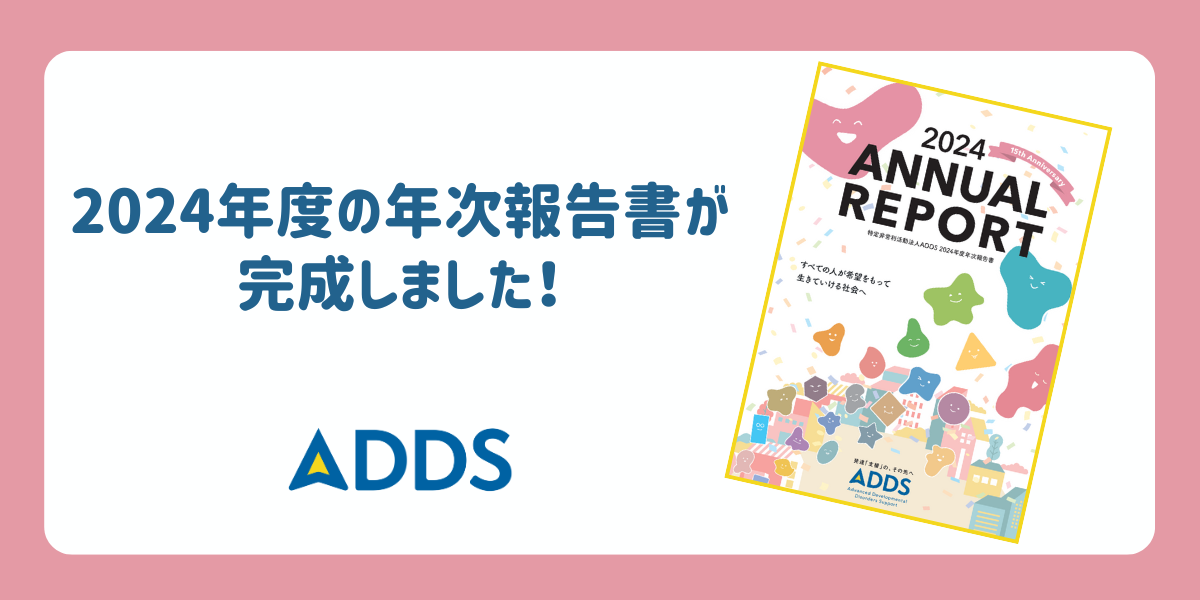 本アニュアルレポートにつきましては、ADDSを継続的にご支援してくださっているサポーターの皆さまや、この1年で単発のご寄付やcharibonでご支援をお寄せくださった皆様など、わたしたちの活動を寄附金という形で力強く後押ししてくださっているたくさんの方々へ順次発送させていただきます。