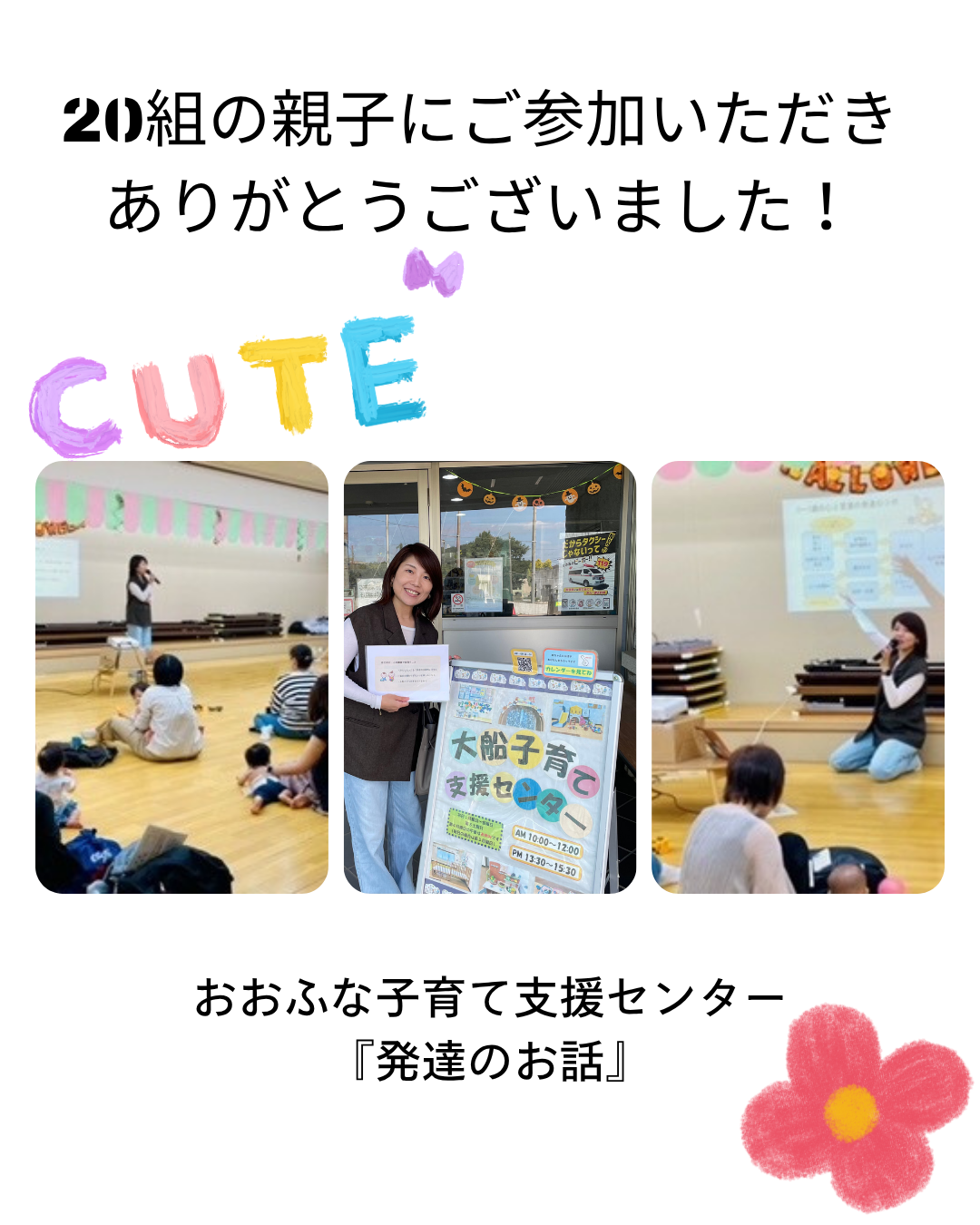 これから続く親子の時間や、年齢と共に変わって行く環境の中で、ふと気になったとき、思い出してくれると嬉しいです。お子さん連れてご参加くださった皆さま、おおふな子育て支援センターの皆さま、ありがとうございました!