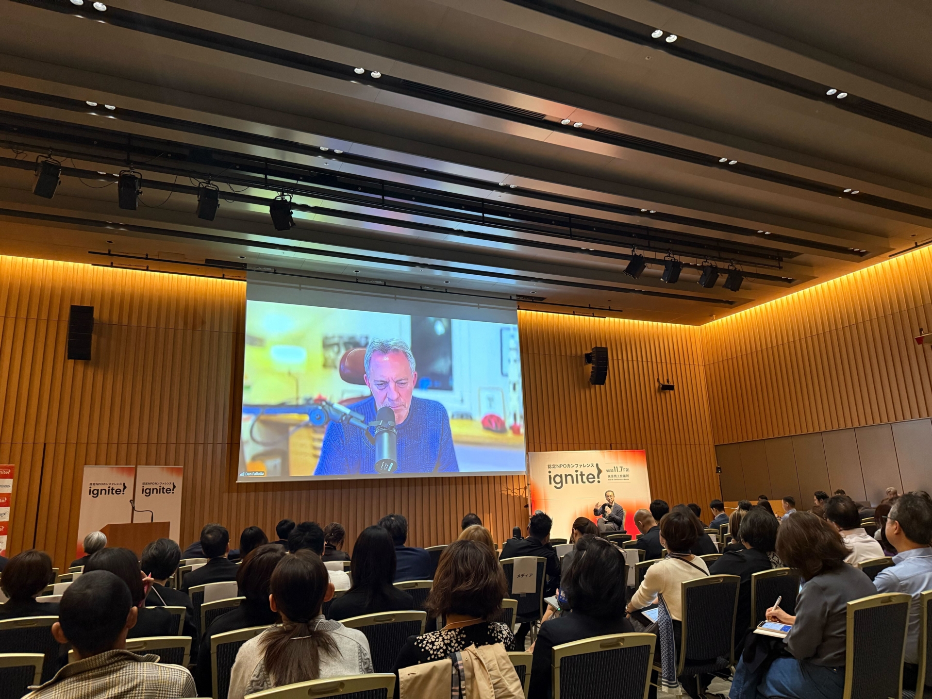 オープニングセッションではアメリカの非営利セクターを牽引し、非営利団体やそれを取り巻く社会に警鐘を鳴らし続けているDan Pallotta氏が登壇され、映画化された著書「Uncharitable」の背景にある寄付文化を巡る潮流や、期日付きで大きなゴールを掲げることの大切さを私たちに伝えてくれました。