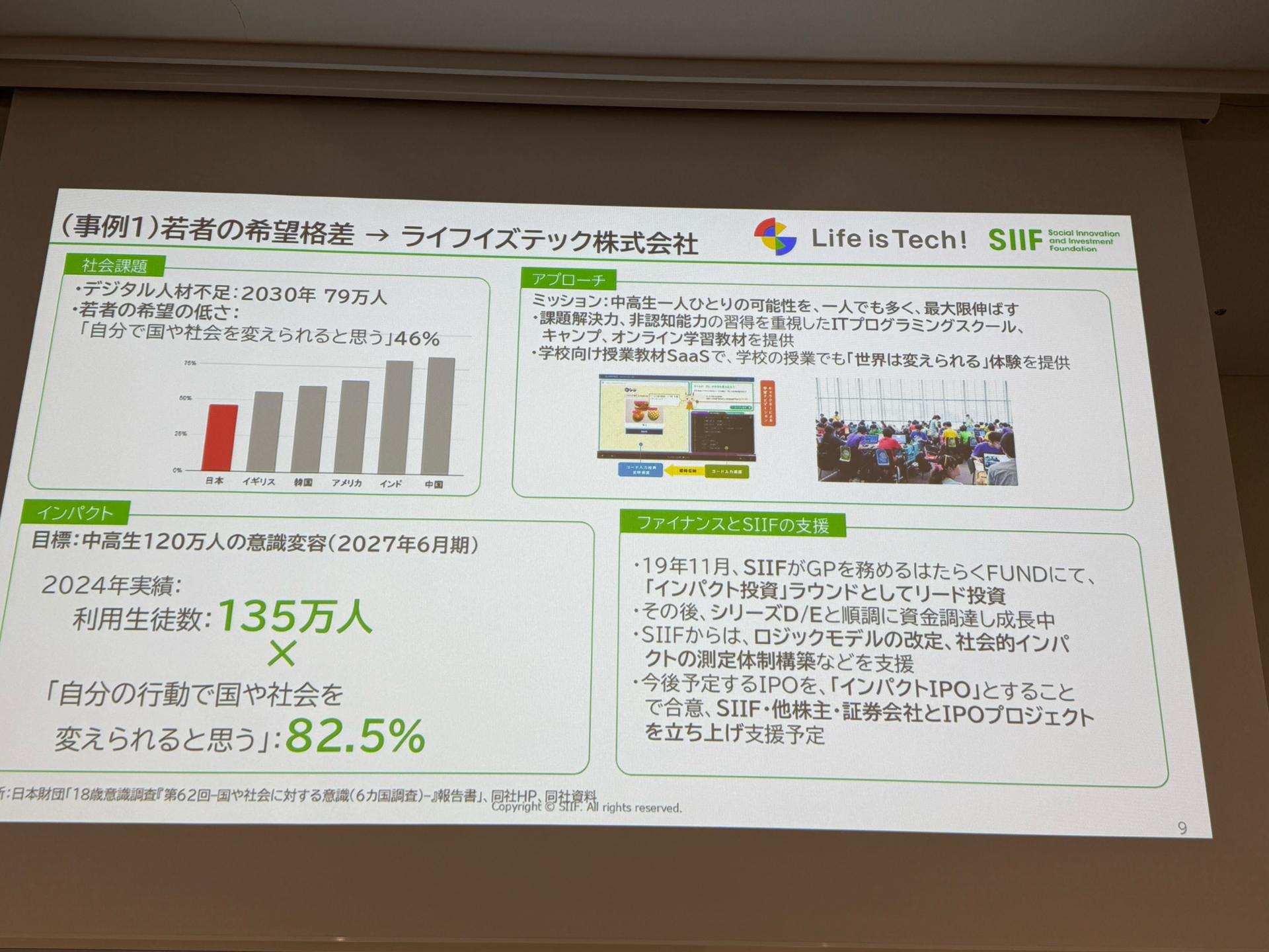 その後のピッチコンテストでは、6つの団体がそれぞれ熱のこもった素晴らしいスピーチをされていました。なぜその社会課題の解決に向け取り組みを継続しているのか、社会を構成する一員として私たちは具体的に何ができるのか。会場全体が思わずNPOの原点に立ち帰らされる様な、まさにignite! (着火)される1時間となりました。