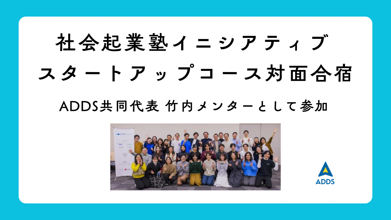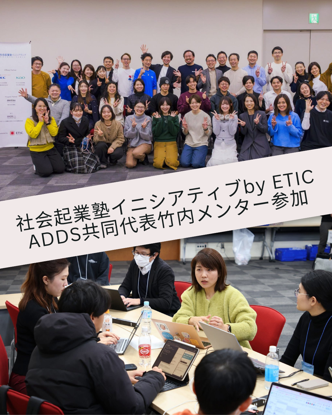 NPO法人ETIC.の「社会起業塾イニシアティブ」が、今年から2つのコースになり、ADDS共同代表の竹内が、「スタートアップコース」のメンターとしてプログラムに参画させていただいています。