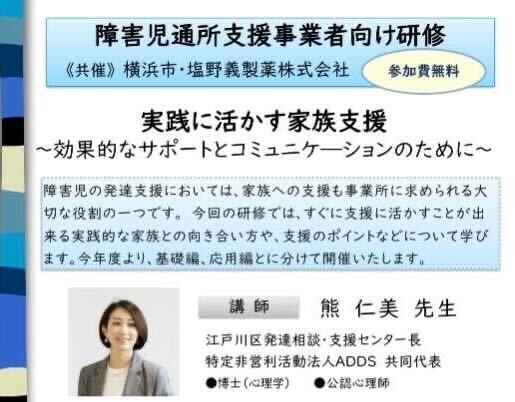 障害児通所支援業者向け研修『実践に活かす家族支援~効果的なサポートとコミュニケーションのために』