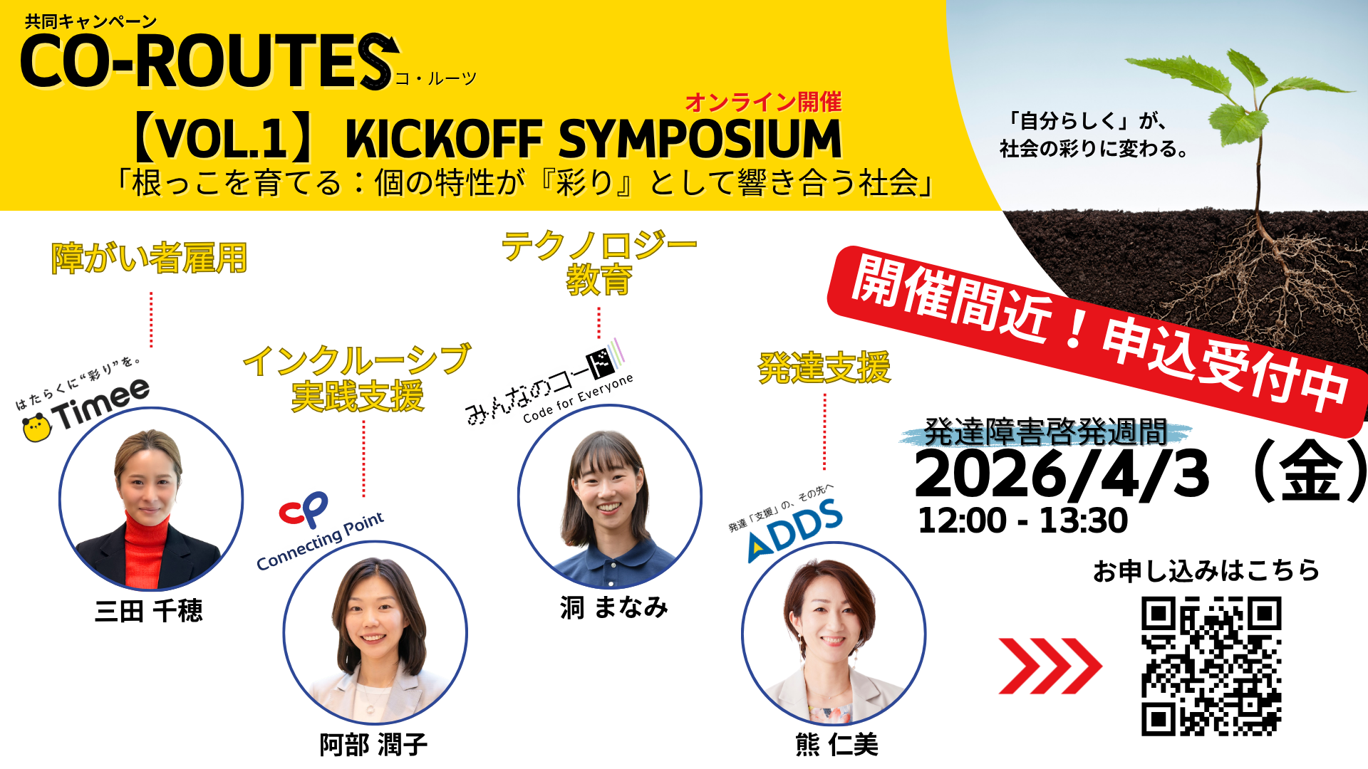 【開催間近】発達障害啓発週間にオンラインシンポジウム:領域を超えた『CO-ROUTES(コ・ルーツ)』キャンペーンを共同で展開。~特性を「自分らしく」という彩りへ。